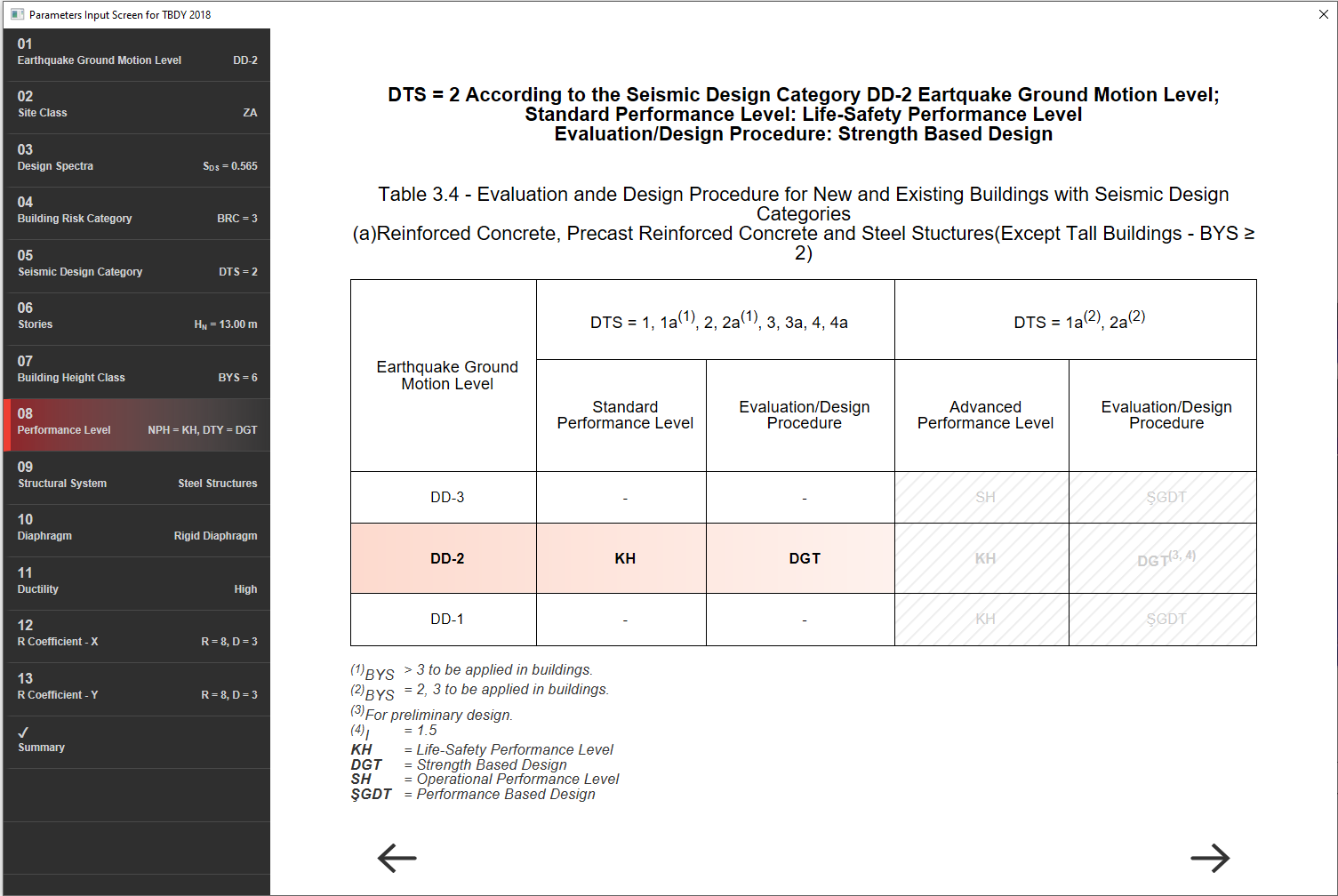 As can be seen in the image above, Life safety performans level and Strength Design approach is chosen for the DD-2 earthquake level for this building. Other options disabled by the program because other sections should not be selected.