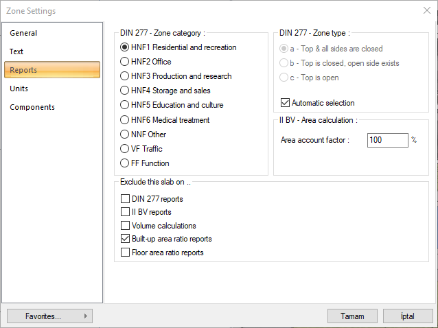 Built-up area & FAR report is created by making definitions in the zone settings in the project.