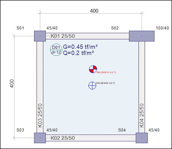 The center of stiffness values calculated by the program will be verified manually using the formulas given above.