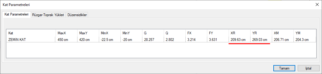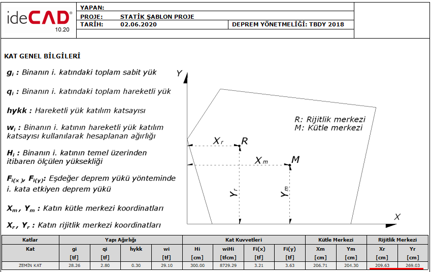 In the program, the coordinates of the rigid center are given in the Floor parameters dialog and under the Floor General Information title in the report.