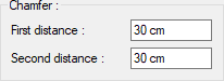 Chamfer ![]() The 1st distance determines how much the first line selected will shorten from the intersection point during the chamfer operation. The second distance determines how much the selected second line will shorten from the intersection point. |