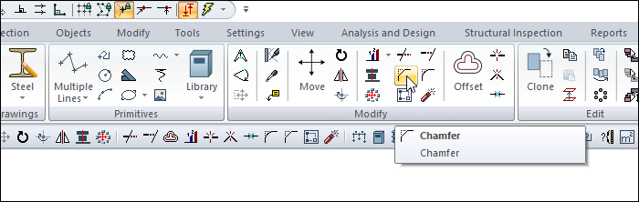 You can access the Chamfer command under the Modify title of the ribbon menu Drawings tab .