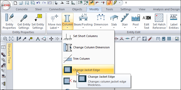 In order to change the jacket thickness of the jacketed column, the "Change jacket edge" command is used.