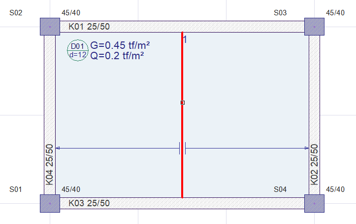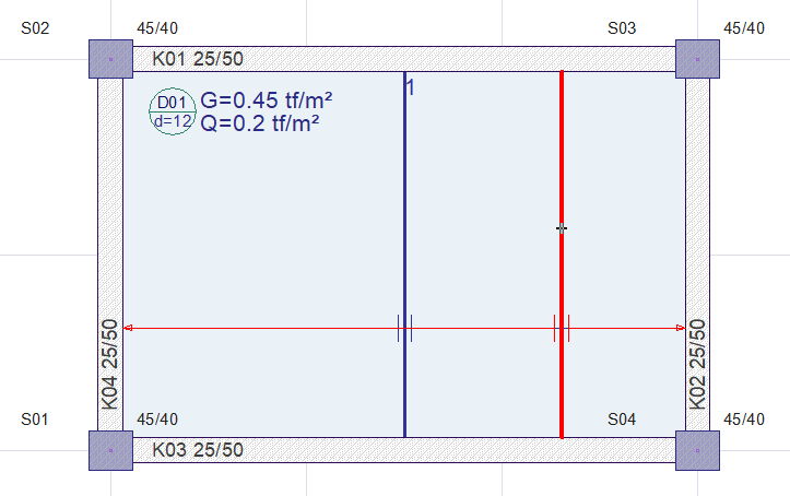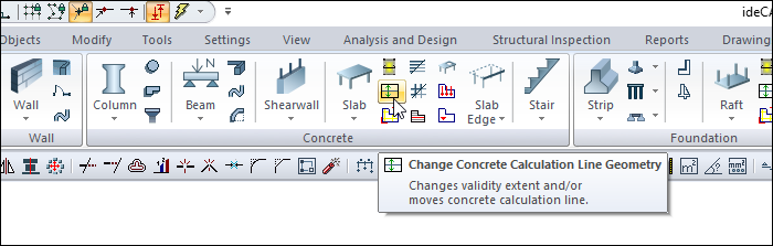 With the change concrete calculation line geometry command, the position and working distances of the slab calculation lines are rearranged.