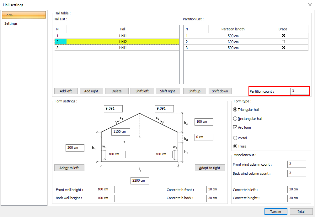 With the partition count feature, the count of selected hall partitions from the hall settings dialog is changed.