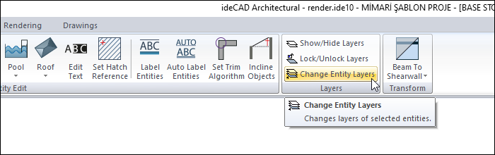 The layer of existing objects is changed with the "Change Entity Layer" command.