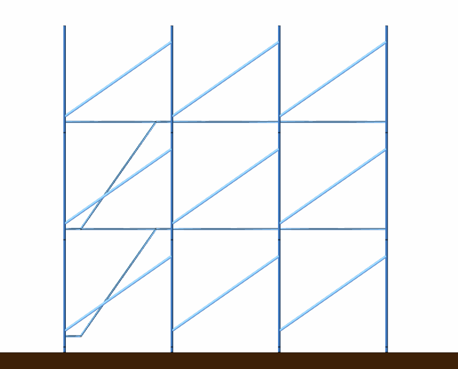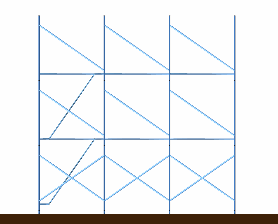 With the Brace Type setting, the type of scaffolding braces is selected. The brace type setting is accessed from the braces tab of the scaffolding settings dialog.