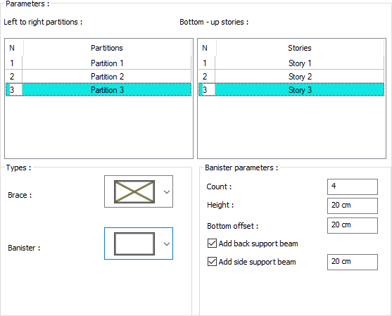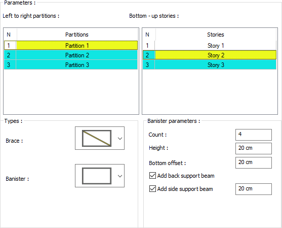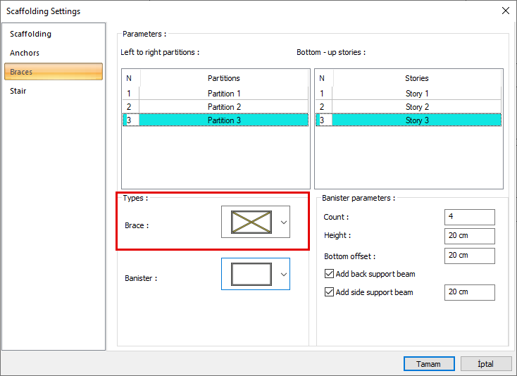 Anchor settings can be made separately for all partitions in the scaffolding. You can select stories from the bottom-up stories section. You can select the partitions in the selected stıories from the left to right partitions section. If you select by holding down the Ctrl key, you can make multiple selections.