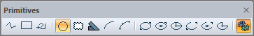 Primitive objects that appear on the screen after running the circle command can be accessed by clicking the Settings icon in the auxiliary toolbar.