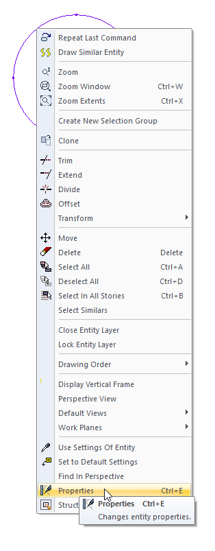 Select the circle you want to enter its settings, click the right button of the mouse and click the Properties line from the menu that opens.