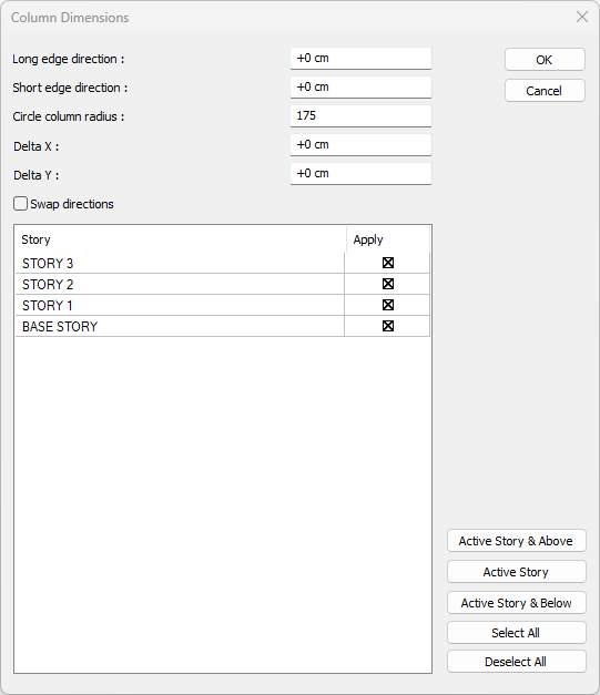 In the opened Column Dimensions dialog, enter at least 175 mm in the circle column radius row.