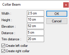 Create Left/Right collar ![]() If double collar beam is wanted, both boxes are checked. If only one collar beam is wanted, one is marked. |