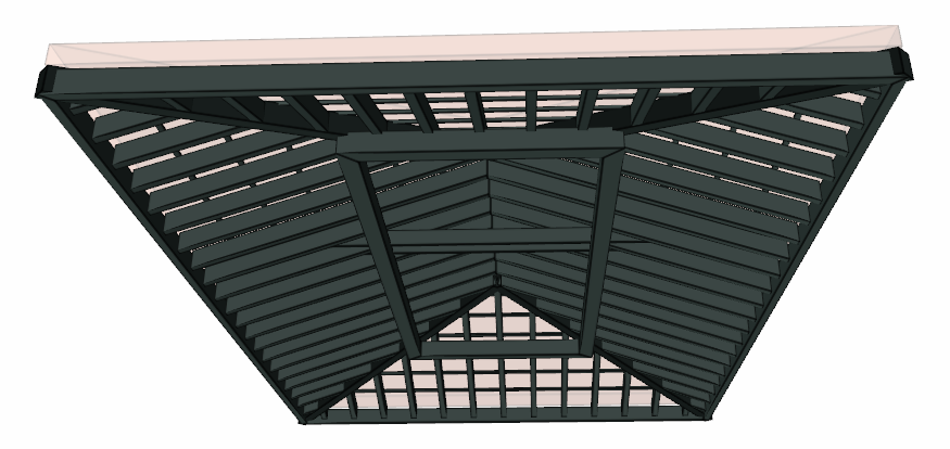 Click with the left mouse button on the other rafters between which the collar beam will be drawn.
