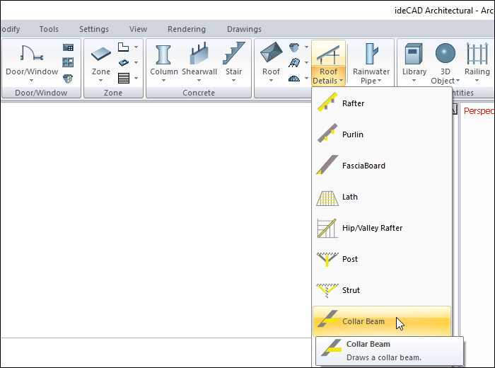 Click with the left mouse button on one of the rafters between which the collar beam will be drawn.
