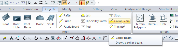 Creation of collar beam by clicking the left mouse button ![]() ![]() |