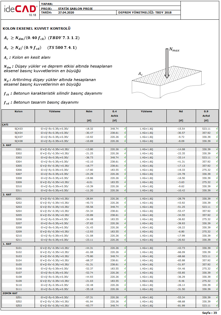 N dm = TS 498 taking into consideration the moving force reduction factor are defined for moving loads, G and Q vertical loads and E combined effects of the earthquake impact G + Q + E under the largest of calculated axial compressive forces