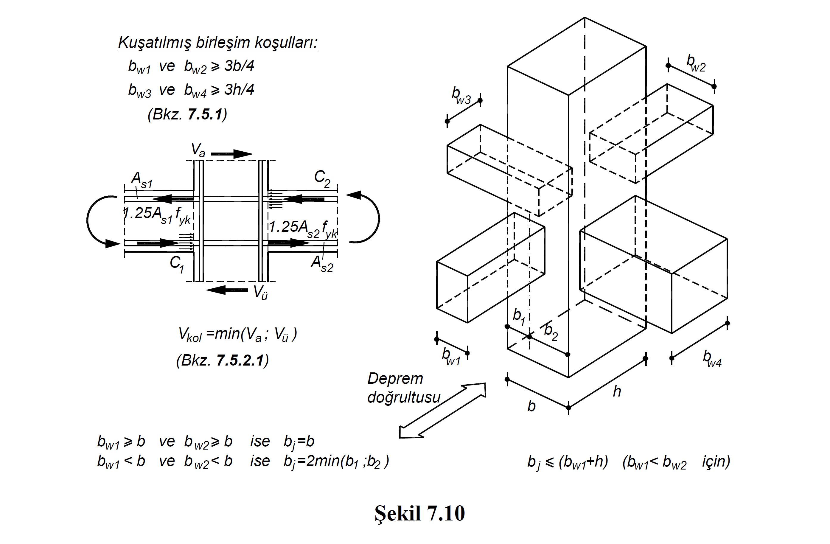 TBDY Article 7.5.2 from which to calculate Column-Beam Shear Safety limit value to be used for calculating the design shear 7.5.1 from made confined joints and unconfined connection classification .