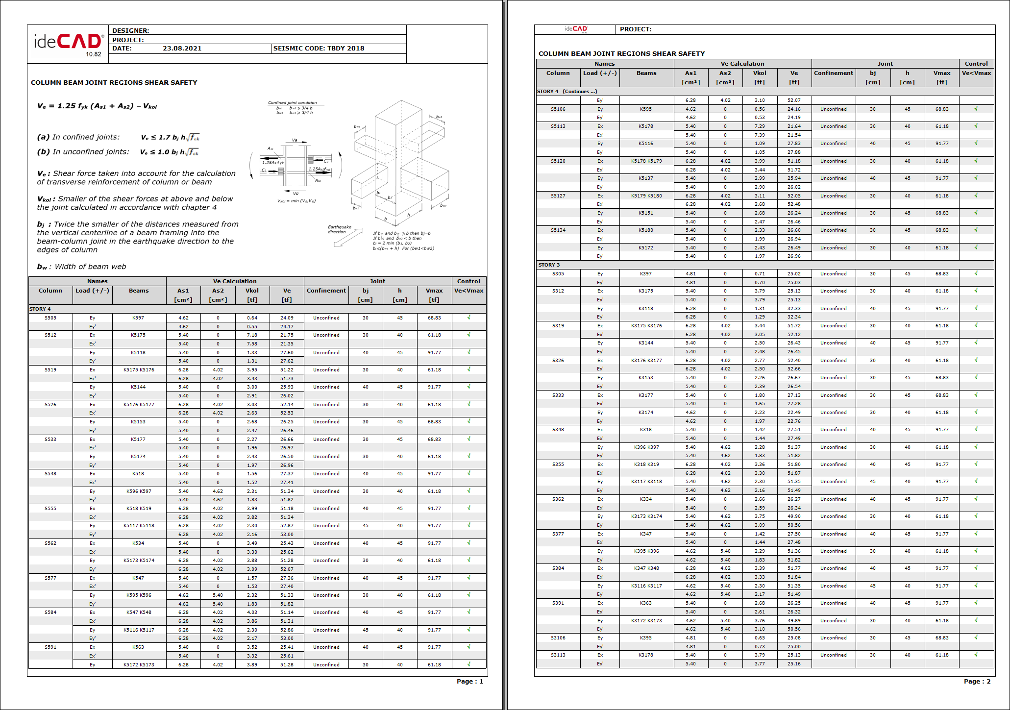 Example column - beam joint safety report pages ![]() |