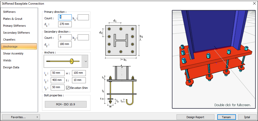 Limit states of Column-Foundation Connection (Stiffened Baseplate) are checked automatically according to AISC 360-16 & Design Guide 1.