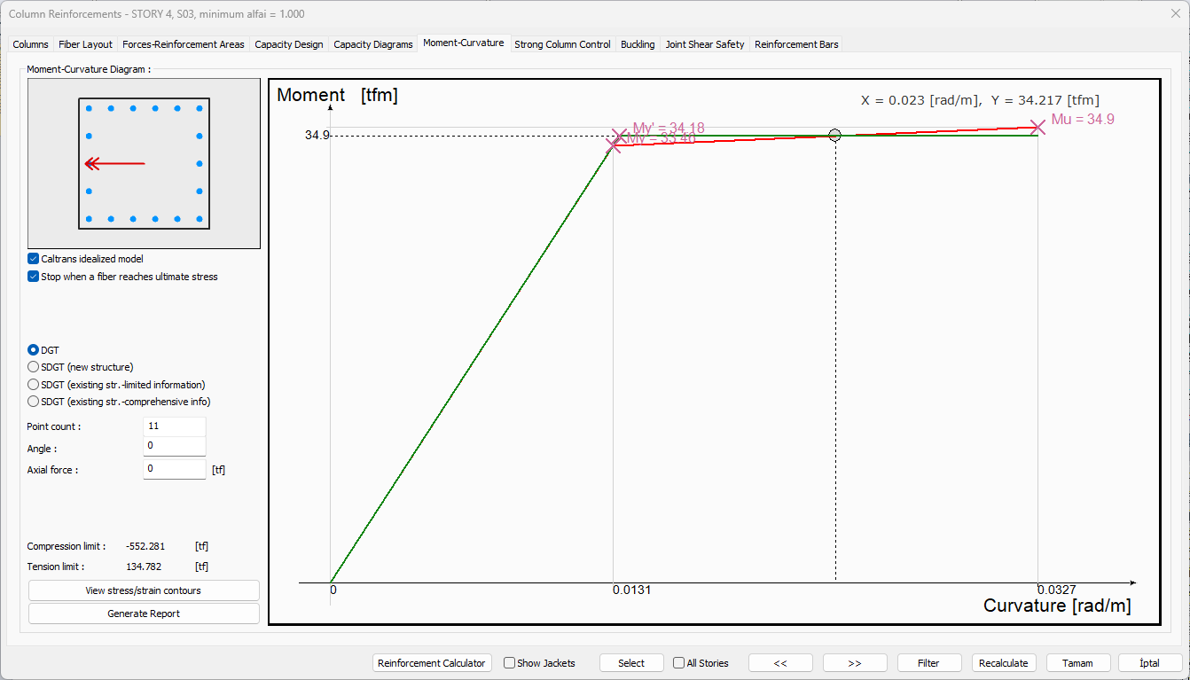 Click the Generate Report button from the moment-curvature tab of the column reinforcements dialog.