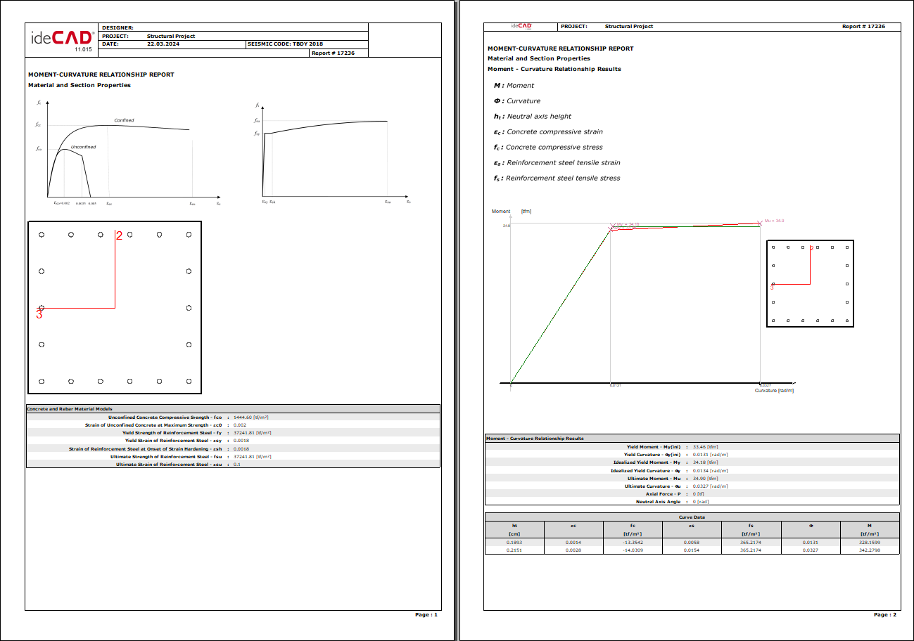 Example column moment-curvature report pages ![]() |