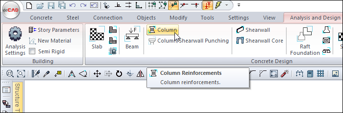 After analysis, you can access it by clicking the Column Reinforcements command under the Concrete Design title of the ribbon menu Analysis and Design tab .