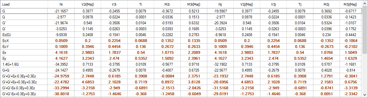 Show maximums ![]() The biggest values of 4 different results obtained from each load combination for 4 different modal cases are shown in the table. |