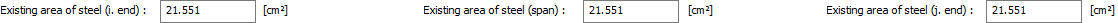 Existing area of steel ![]() The existing area of steel values for end i, span and j end are shown. |