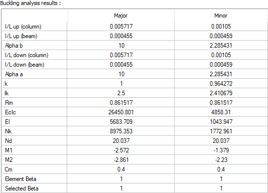 ![]() I/L up (column): Effective length ratio for columns connecting to the element top node. |
