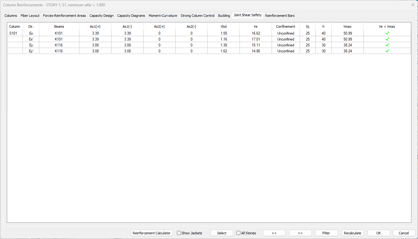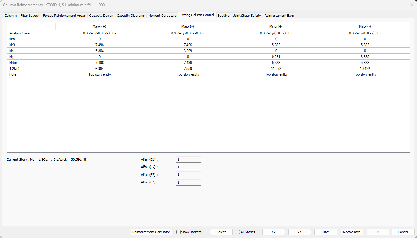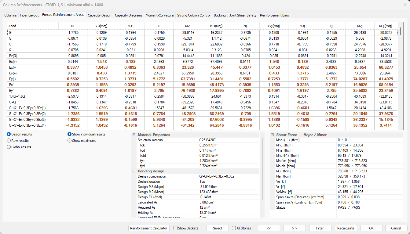 Control table ![]() Major (+): Positive major moment direction of column to be taken into account according to the earthquake direction. |