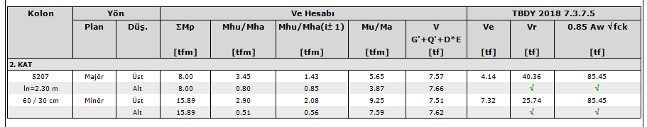 The sum of the shear force calculated from the earthquake increased with D with the vertical loads, Eq. If calculated by (7.5) is less than Ve, this shear force will be used instead of Ve. The upper bound value for ve is given in column V in the report.