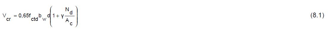 In the calculation of the transverse reinforcement in the column confinement zones defined in 7.3.4.1 , if the shear force consisting only of seismic loads is greater than half of the total shear force in seismic condition and at the same time, the condition of N d ≤ 0.05 A c f ck is fulfilled, the contribution of the concrete to the shear strength V c = 0 is taken.