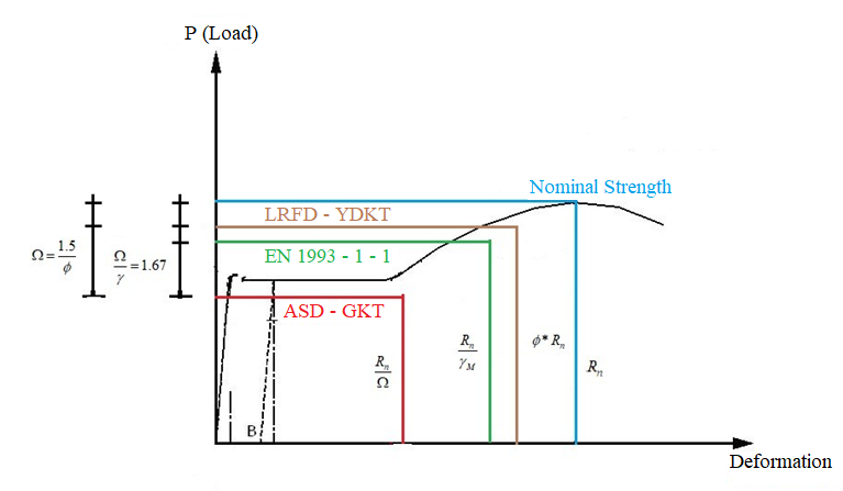 TS EN 1993-1-1 has the same philosophy as LRFD-YDKT. At the same time, compared to LRDF-YDKT, it provides a design closer to real behaviour with highly detailed section classification, load increment coefficients and safety coefficients.