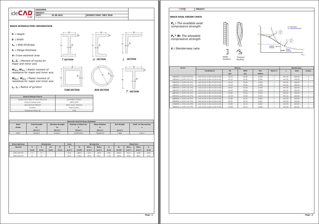 Sample concentric brace report pages ![]() |