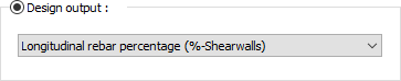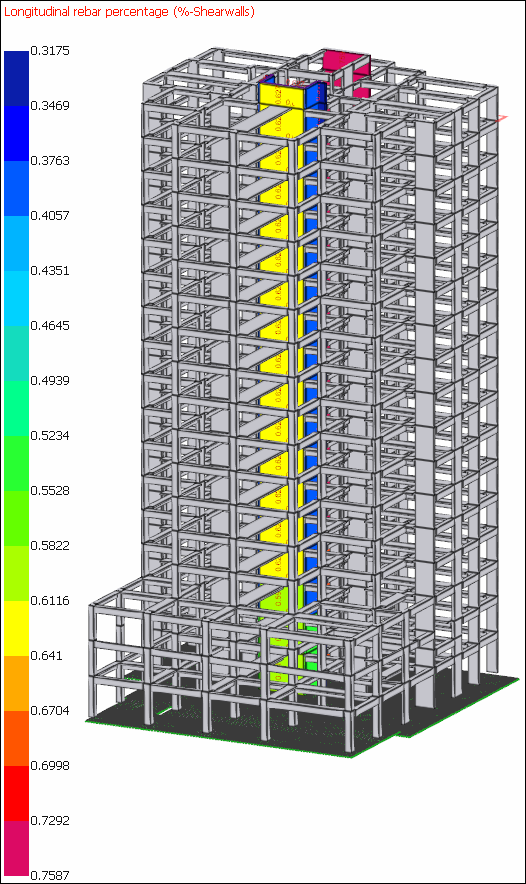 Longitudinal rebar percentage (% -Shearwalls) ![]() Shearwalls with different pursuits are painted in different colors in the view window. From the scale on the left of the screen, it can be seen which color corresponds to which pursmail value in percentage. ![]() |