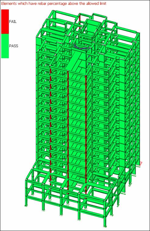 Elements which have rebar percentage above the allowed limit ![]() If the current rebar ratio of the element exceeds the maximum pursmail value specified in the parameter settings, the relevant elements are colored red in the view window. ![]() |