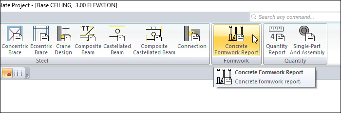 Click the Concrete Formwork Report icon. The concrete formwork report dialog will open.