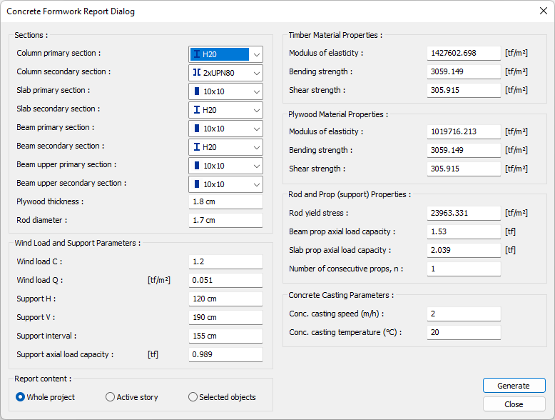 Whole project ![]() Formwork scaffolding report is generated for the whole project. |