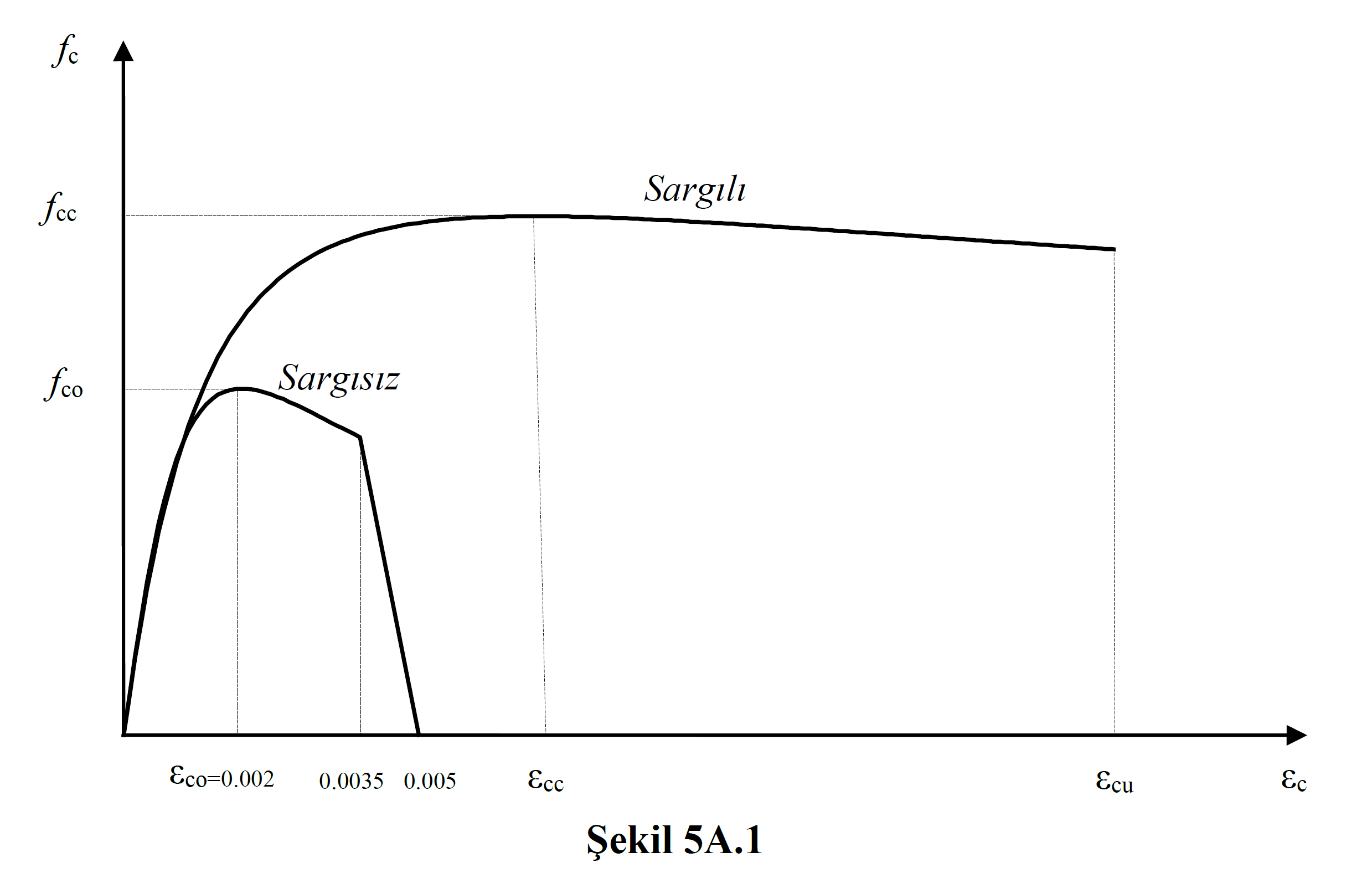 In Annex 5A.1 of TBDY Section, stress strain relations of confined and unwrapped concrete models are explained and shown in Figure 5A.1 .