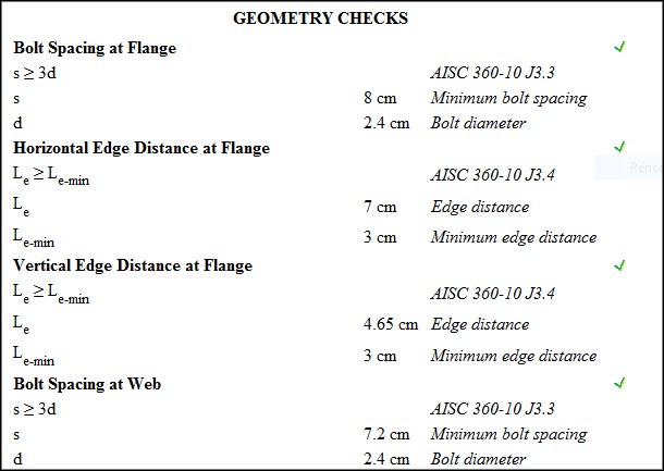 The program determines the lower limits of the weld sizes according to AISC restrictions. The program warns the user when the limits regarding resource dimensions are exceeded.