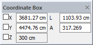 The coordinate system is used with the parameters X (abscissa), Y (ordinate), A (angle), L (length). The tool for which these parameters are used is the coordinate box. As the cursor moves, the values on the coordinate box also change. You can watch the coordinate information of the cursor from the coordinate box.