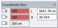 To enter a value in the coordinate box, either the X, Y, L and A keys are used on the keyboard or these boxes are clicked with the mouse. While the cursor is in the box, information is written and the enter key is pressed on the keyboard. After pressing the Enter key, the line turns red. Now the entered value is locked.