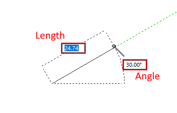 Dynamic entry allows entering angle and length information without using the coordinate box when entering an object.