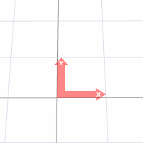 Origin (0,0) is the point in the lower left corner of the screen, indicated by a circle. Coordinates defined according to this point are global coordinates. The horizontal axis passing through the origin is x and the vertical axis is the y axis.