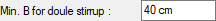 Min. B for double stirrup ![]() The foundation tie width is compared with this parameter. As long as the width of the foundation tie does not exceed the minimum width specified in this parameter, the tie beams are reinforced with a double arm stirrup. Otherwise, they are equipped with 2 double-armed stirrups. |