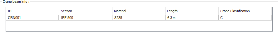 Crane beam info ![]() ID: It is the name of the crane beam in the plan. |