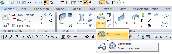 Circular beams can be created with the Circle Beam command.