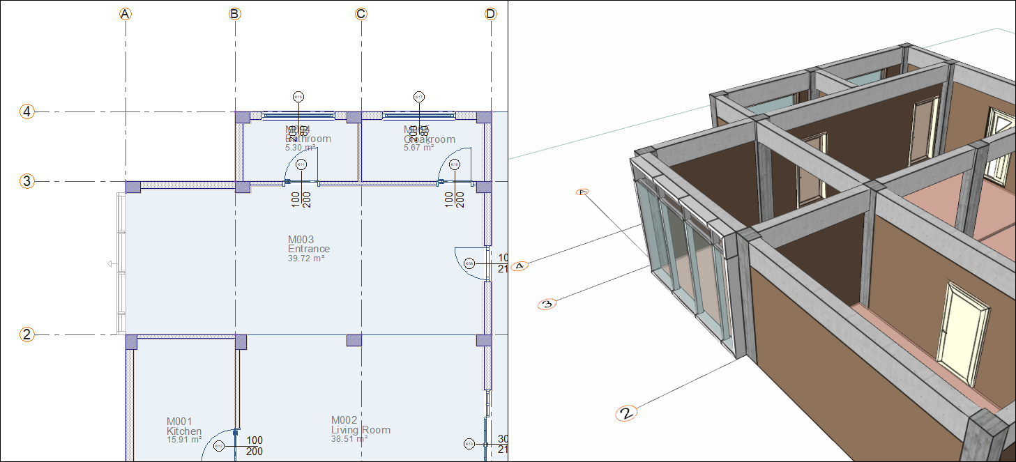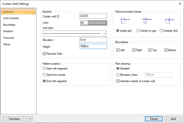 You can find detailed settings related to curtain wall under the title Curtain Wall .