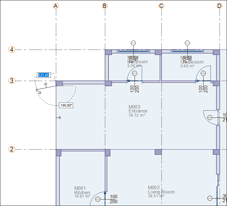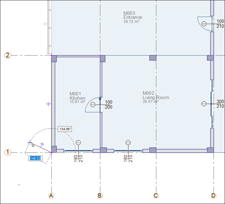 Click the A-2 axis intersection as your starting point. Then click on the A-1 axis intersection.