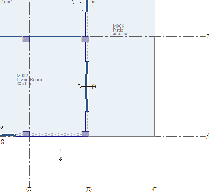 Click on the C-1 axis intersection and the rainwater pipe will be formed. Press the Esc key on the keyboard to exit the command.